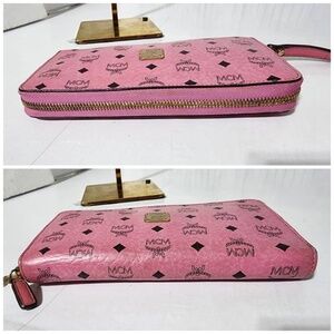 Authentic MCM Visetos Zip Around Wallet Pink