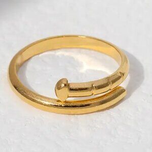 Gold Bohemian Boho-Chic Minimalist Adjustable Nail Shaped Ring - Sterling Silver