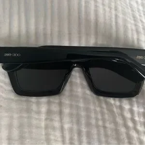 Stylish black sunglasses by Jimmy Choo. Comes with an elegant cream case. Full inclusion