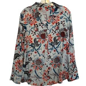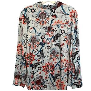 Chico's NEW Sandwash Satin Top Size 2 (Womens Large) Light Blue Paisley Floral