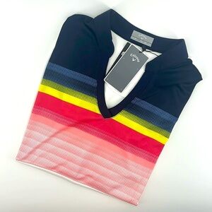 Callaway Womens Gradient Stripe Color Block Golf Polo Brilliant White. Size XXL.