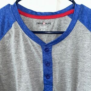 Swiss Alps Blue and Gray Henley Shirt, Men’s Size XXL