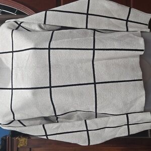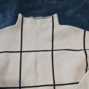 Stylish mockneck with a windowpane pattern. White with contrasting black lines. M