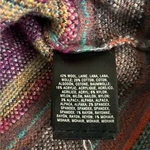 Material blend: wool/cotton/acrylic/spandex/nylon