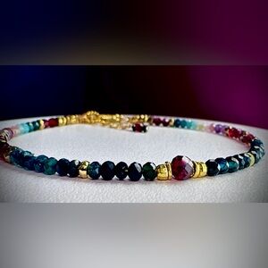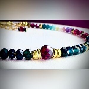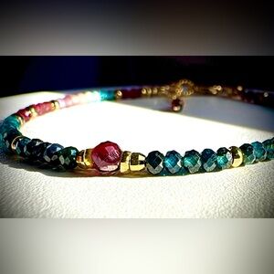 🌟ONE OF A KIND ⭐️.✨Single Strand Blue Tourmaline,Garnet 18Kt Vermeil Bracelet
