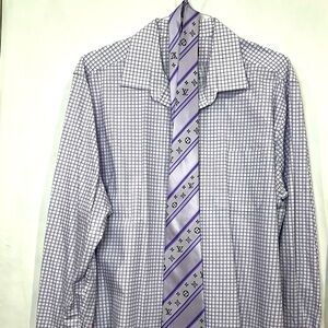 Elevate your wardrobe with this stylish men's checkered shirt. Featuring a classic white and purple design, it's perfect for any occasion.
