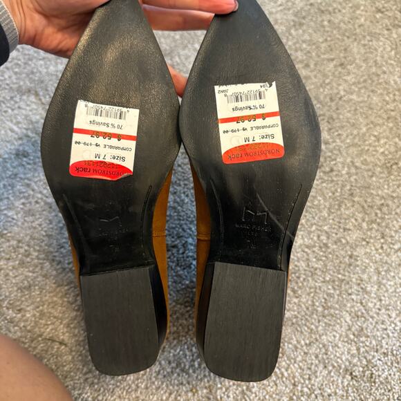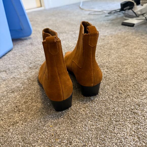 Marc Fisher Yarita Western Style Chelsea Boot Brown Suede Women's 7.5 MSRP $179. Framed by a pointed toe and stacked block heel, this luxe leather bootie will complement your contemporary-chic wardrobe from season to season.