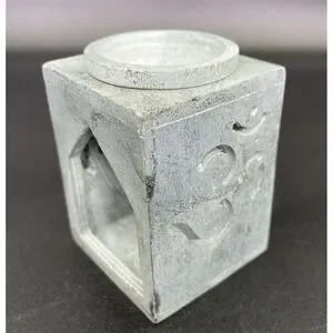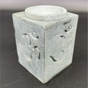 Essential Oil Burner Handcarved Soapstone Gray Om Symbol Made In India