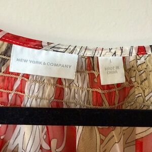 EUC - New York & Company Sheer Red and Tan Patterned Sheer Blouse
