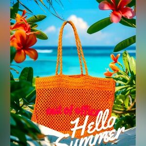 Neon Orange and Pink “Out of Office” Raffia Tote - New without tags