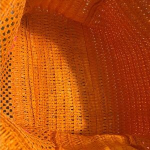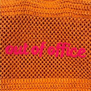 Large, flexible tote with long handles and lots of space! Let people know you are “out of office” with this neon orange and pink woven tote