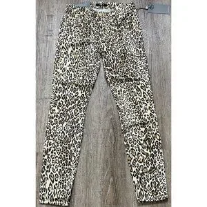 7 For All Mankind Womens Leopard Print Cropped Skinny Jeans Beige Sz 24.