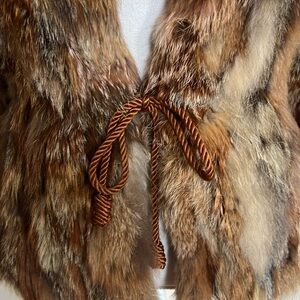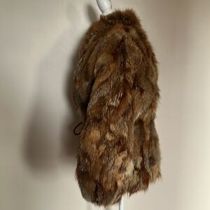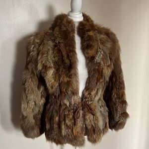Vintage Luxurious Brown/Tan/Cream Fur Jacket with Cord Tie at Waist - Unbranded