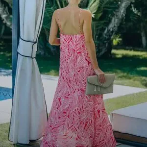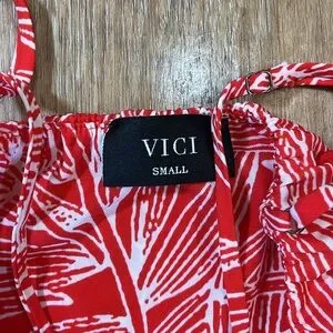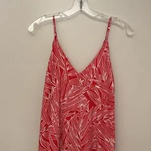 Vici Red White Palm Print Maxi Dress Sleeveless EUC Women's Small S Leg Slit