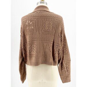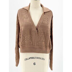 INTERMIX Suki Pointelle Knit Polo Sweater in Tan S