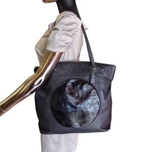 ❤️Coach Black Leather Circle Accent Tote