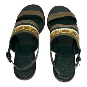 Tory Burch Edina Green Leather Colorblock Slingback Soho Lux Sandals Women’s 8.5