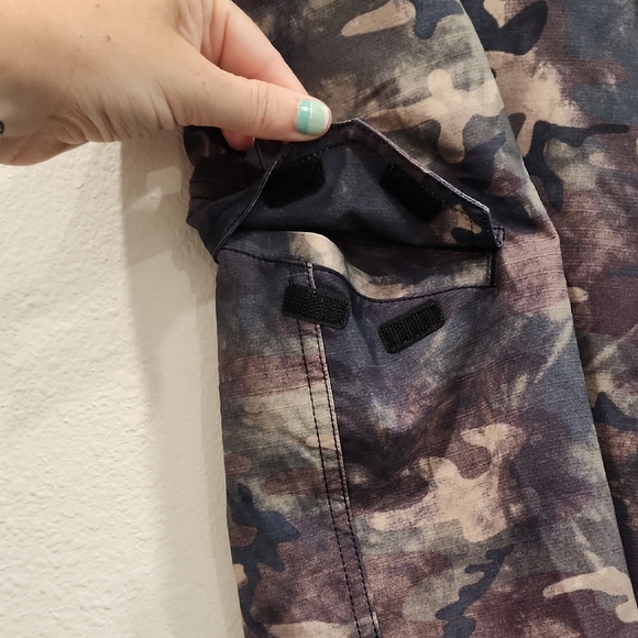 Used once, excellent Condition! Dive into style with Volcom's board shorts, showcasing a unique urban camouflage pattern in green, brown, and black hues. Designed for durability and comfort, these shorts are perfect for any water activity. The drawstring waist ensures a snug fit, making them a versatile choice for beach days and water sports alike. No liner, single right side velcro pocket. Inseam approx 10". Size 34