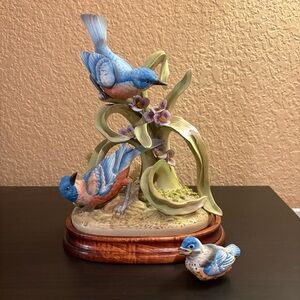 Andrea by Sadek Blue Bird Family With Wooden Base