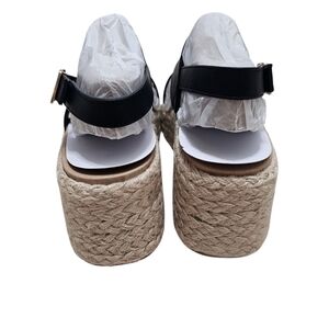 STYLE: Womens sandals with a double band, iconic buckle, and open toe with a 2 3/4 inch espadrille platform heel.