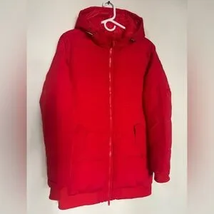 NWOT ONLY Red warm zip-up puffer jacket with a hood M