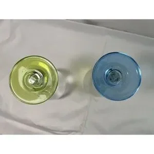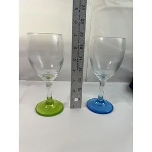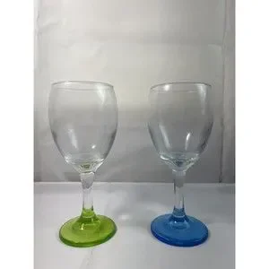 2 Wine Goblets w/Lime Green & Blue Stems&Bases 8oz, 7” Tall Clear Bowls