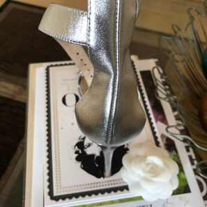 Elegant silver heels with ankle strap. Perfect for any occasion.