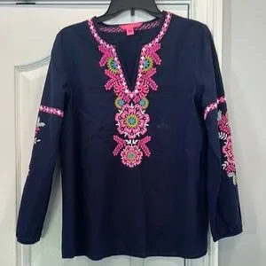 Lilly Pulitzer Navy Blue Embroidered Women's Top