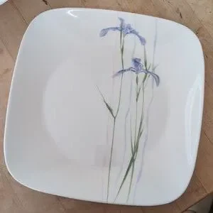 Set of 3 Corelle Shadow Iris 10.5 in dinner plates. excellent pre-owned condition. This pattern made by Corning was discontinued I believe in 2021 . Gorgeous purple flower will brighten up any table setting! There was a reason Van Gogh loved irises.