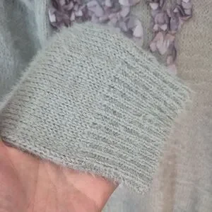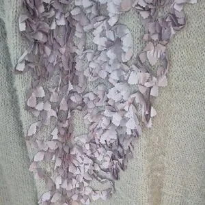 Chic gray sweater with a Silver floral accent. Soft and stylish for any occasion.