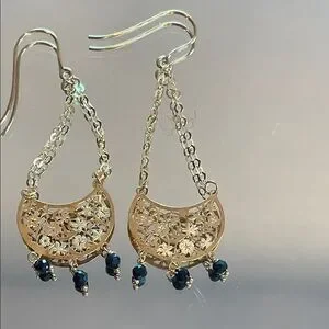 Solid 14K Gold Dangle earring w/Black Quartz.Made is Italy.(Has the stamps and been tested).2” long