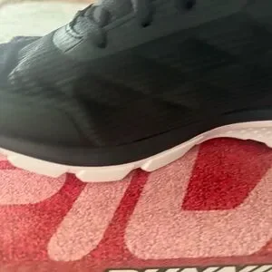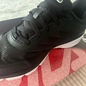 Stylish black upper with white sole. Perfect for workouts and everyday wear. Comfortable fit.