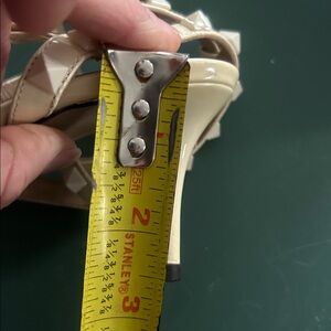 Chic cream heels with signature stud accents. Perfect for a stylish look.