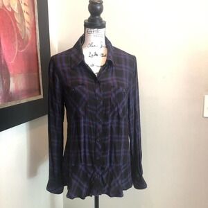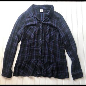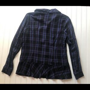 Cabi Moody Check Plaid Peplum Shirt Blue Black Size Medium Button Down casual