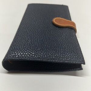 Mulberry Wallet Long Bifold Caviar Leather Navvy Blue Tan Leather Trim Vintage