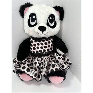 Adorable Build-A-Bear Workshop Panda Plush, measuring about 18 inches tall. This sweet panda features soft black and white fur, embroidered eyes, and comes dressed in a removable pink polka dot dress with panda face print, sequin waistband, and black tulle trim.
