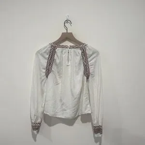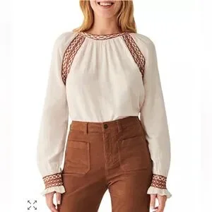• Faherty • Women’s Arles Embroidered Top White and Brown Medium