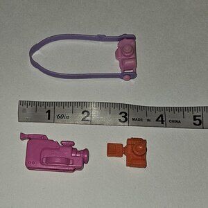 3 Barbie Doll Size Camera Lot Video Camera Camcorder Pink Purple Orange Mattel