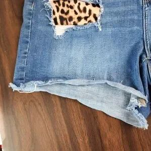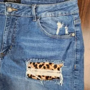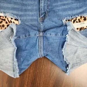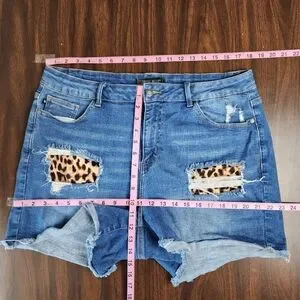 Judy Blue Distressed Jean Shorts Stretchy Denim Animal Print Accent Size 3XL