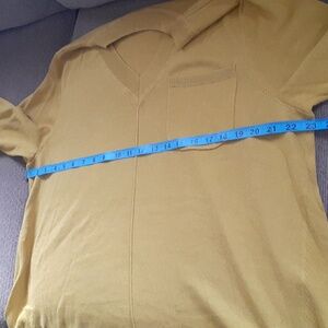 Elevate your wardrobe with this stylish mustard V-neck sweater from Isaac Mizrahi. Ideal for casual wear.