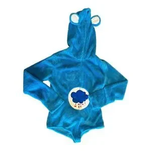 Keywords: Care Bears onesie, Adult onesie, Hooded onesie, Blue onesie, Costume onesie, Grumpy Bear, Sleepwear, Romper, Jumpsuit, Plush onesie, Cartoon onesie, Nostalgic, Care Bears Costume