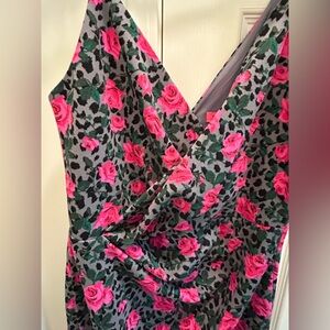Betsey Johnson Gray Pink Rose Floral Leopard-Print Sheath Dress Sz 10