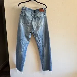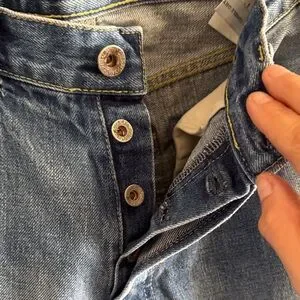 Excellent condition! Buttonfly. I would say they are semi high rise but straight leg. SUPER flattening. Japanese Denim.