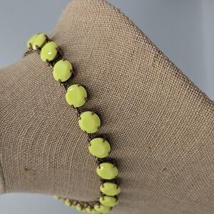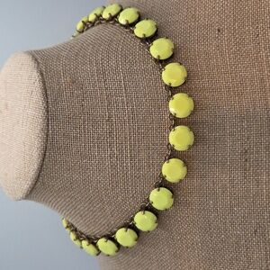 Brighten your look with this elegant yellow necklace. Brass color chain links. Perfect for any occasion. 18 inches long. In great condition.