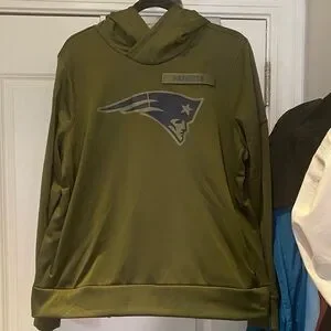 Army green hoodie featuring the Patriots logo in navy. Like new worn once. Ladies XL. Dog friendly home