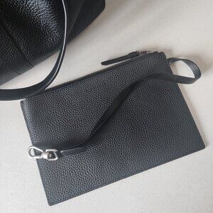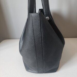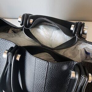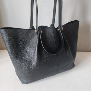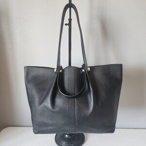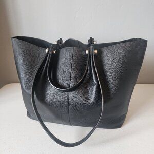 "EUC" Gorgeous Looking Matt Black Pebbled Leather Allington Large Tote By All Saints. Dual Top Handles with 10.5" Drop on Longer Handle, Snap Strap Closure, Open Concept Bag/ No Pockets, Removable Interior Pouch, Pouch Measures 9.5" X 6.5" ( Never Used), Aged Silver-tone Logo Embossed Hardware, Bag Measures approx. 11" T X 17" W at Top X 5" D, Leather Feeted Bottom, Great Condition, No Wearing/Corners/Stains, Minor Markings Normal, Including Original Tag & Card, Used Twice:) Rt.299.00 approx. * Last Stock Photo is this Bag just a Different Finish for Size Reference.