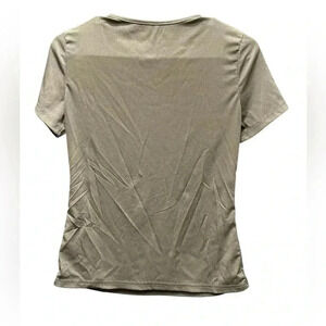 SHEIN Khaki Short Sleeve Tee with Front Zipper