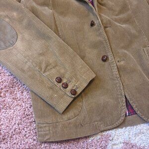 American Eagle Corduroy Jacket Mens XL Beige Tan Two Button Elbow Pad Preppy