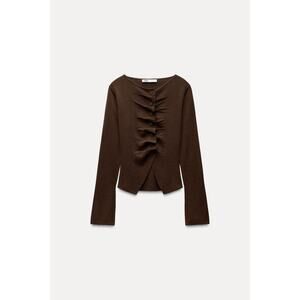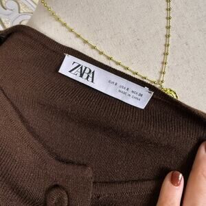 Zara | Wool & Silk Blend Cardigan Button Down Top Chocolate Brown Small