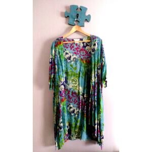 Ulla Popken multicolor long duster cottagecore floralcore top One Size